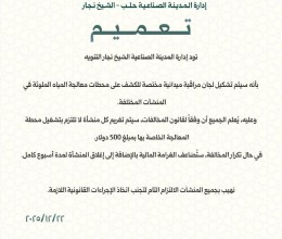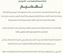 تُهيب إدارة المدينة الصناعية بحلب بالسادة أصحاب منشآت المصاب... المزيد