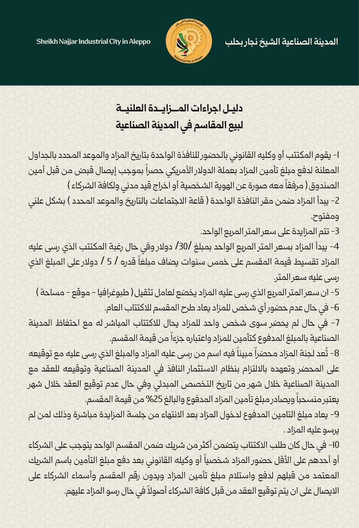 Announcement of the results of the second phase of the subscription for industrial plots in the industrial city of Alepp... More