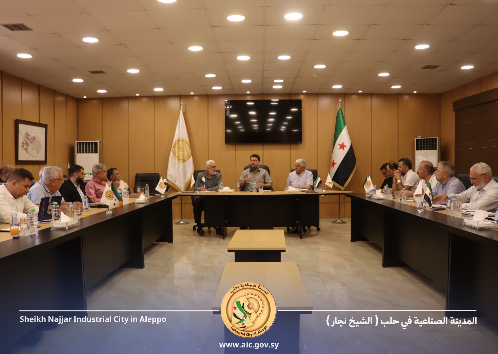 ضمن خطة المدينة الصناعية بحلب لاستئناف دوران عجلة العمل والنهوض بالإنتاج، وفي إطار تذليل الصعوبات، عقد اليوم مدير عام المدينة الصناعية بحلب، المهندس أحمد كردي، اجتماعاً مع وفد من نقابة المقاولين ووفد من نقابة المهندسين.