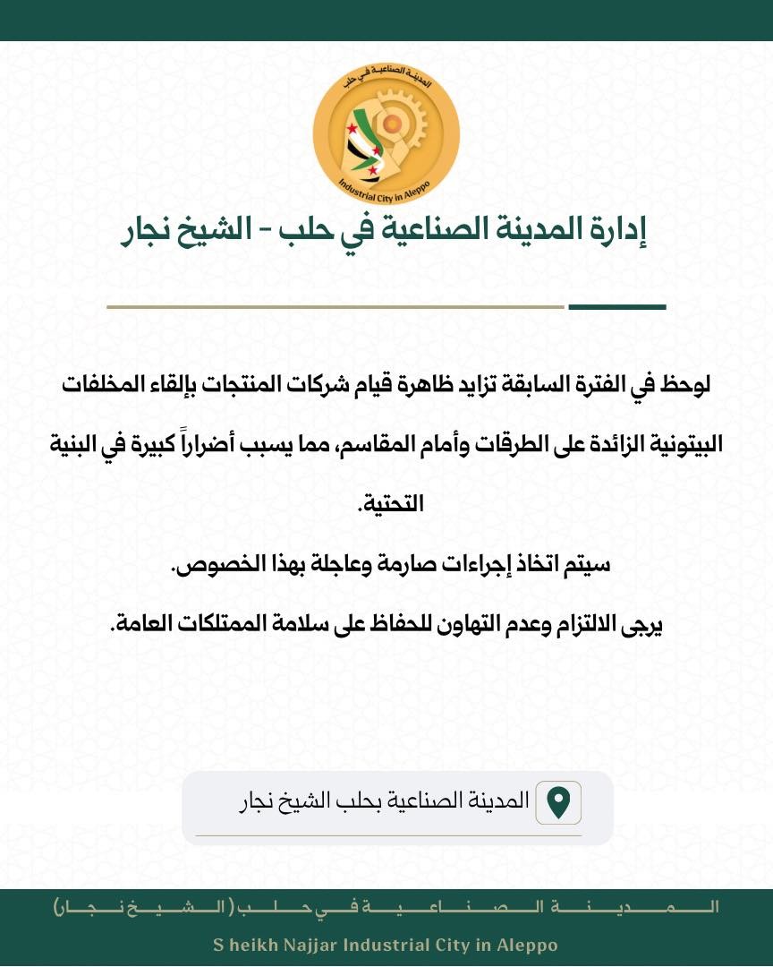 تقرير أعمال الربع الثالث لعام 2025 المدينة الصناعية في حلب... المزيد