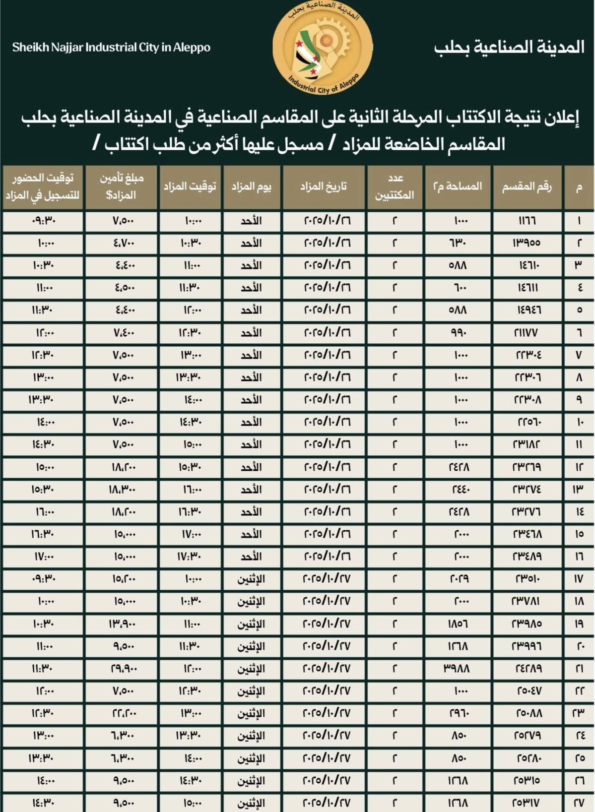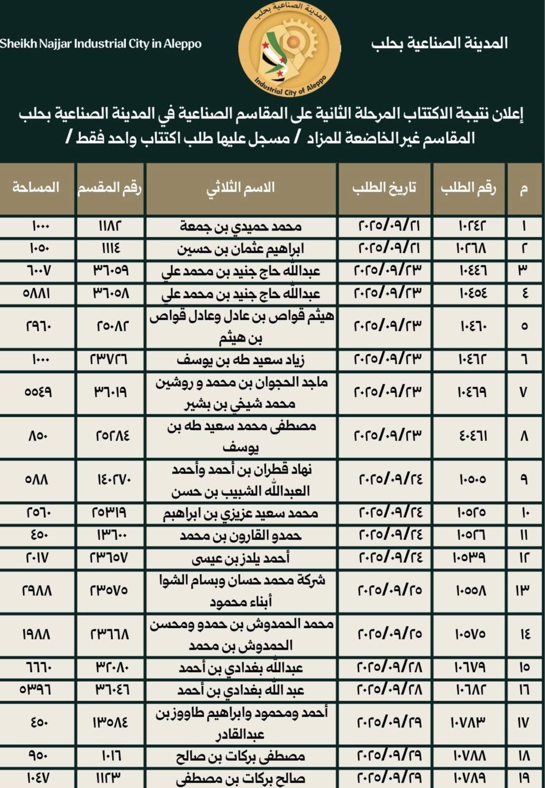 إعلان نتيجة الاكتتاب المرحلة الثانية على المقاسم الصناعية في... المزيد