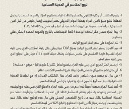 دليل اجراءات المزايدة العلنية لبيع المقاسم في المدينة الصنا... المزيد